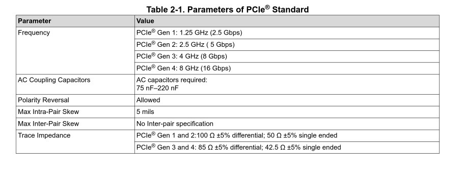 Oh no mes amis, we screwed up big time here. You see, the 100ohm differential impedance is up to PCIe 2. PCIe 3 and 4 require a 85ohm one as specified by this helpful table [2] (on a side note, dear Texas Instruments, I swear your design guidelines documentations are giving me a crash course in electronic engineering that I will forever be grateful for. The series on pcb capacitive touch sensors is so well written I thought I had accidentally purchased a book)